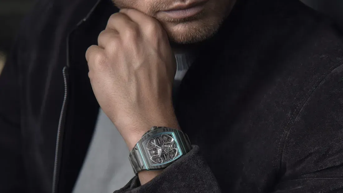 The UltraFino Maserati Flying Tourbillon is far from a mere branding exercise; it is a feat of modern horological engineering. The timepiece features a skeletonized dial that draws direct inspiration from the automotive world. Specifically, the intricate bridges and dial structure are modeled after the wheel designs of the Maserati MCPura, a concept that emphasizes fluid dynamics and structural minimalism.