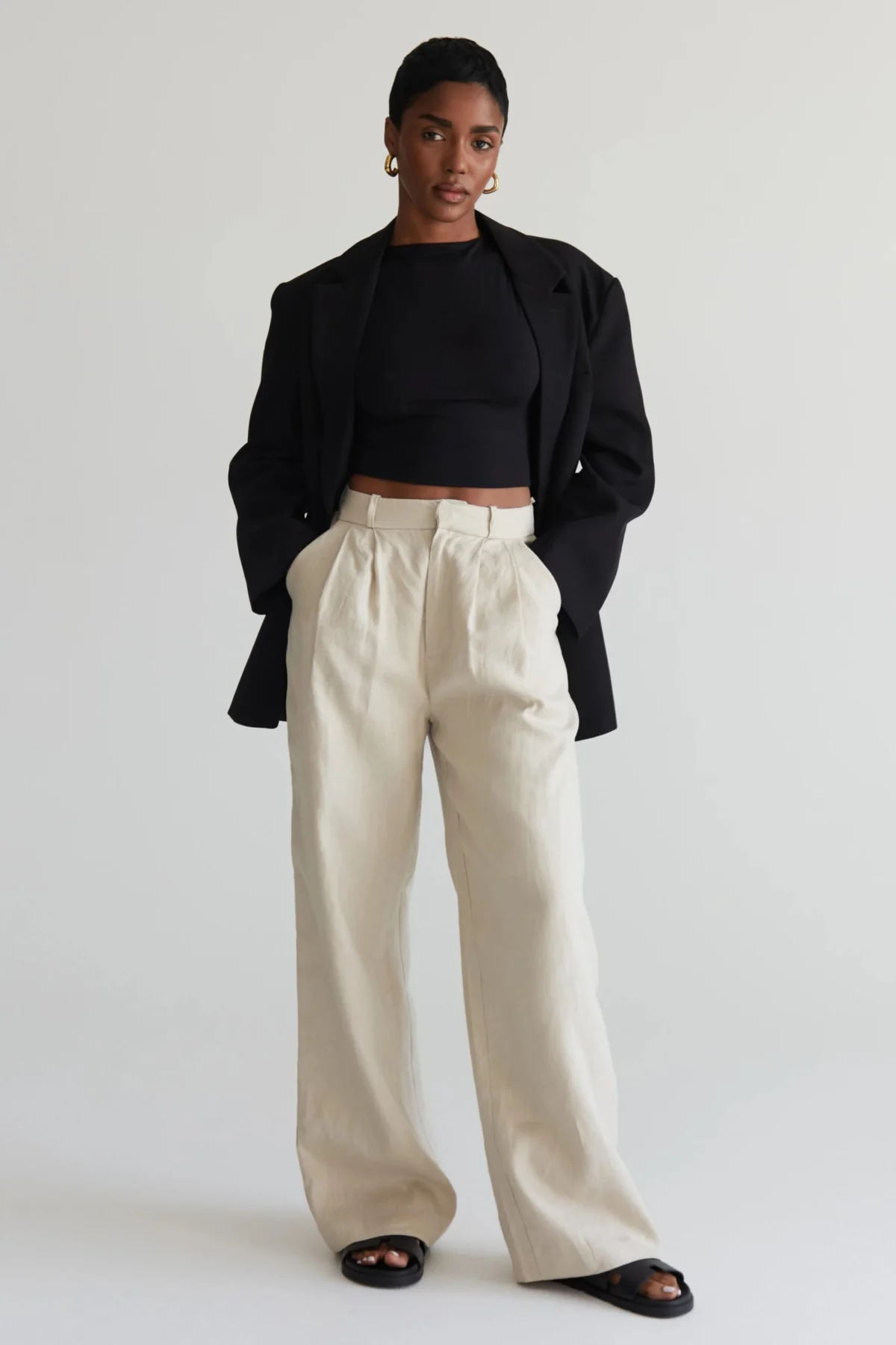 3. The Power Duo: Oversized Blazer and Cream Trousers with a Crop Top